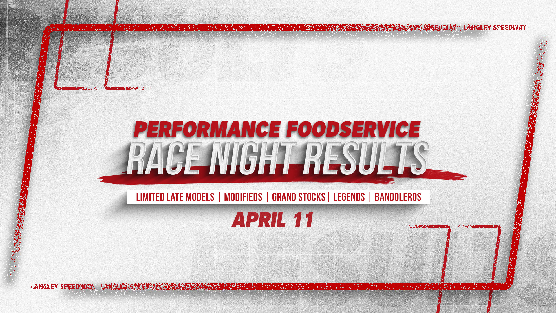 Performance Foodservice Race Night Schedule | April 11, 2026